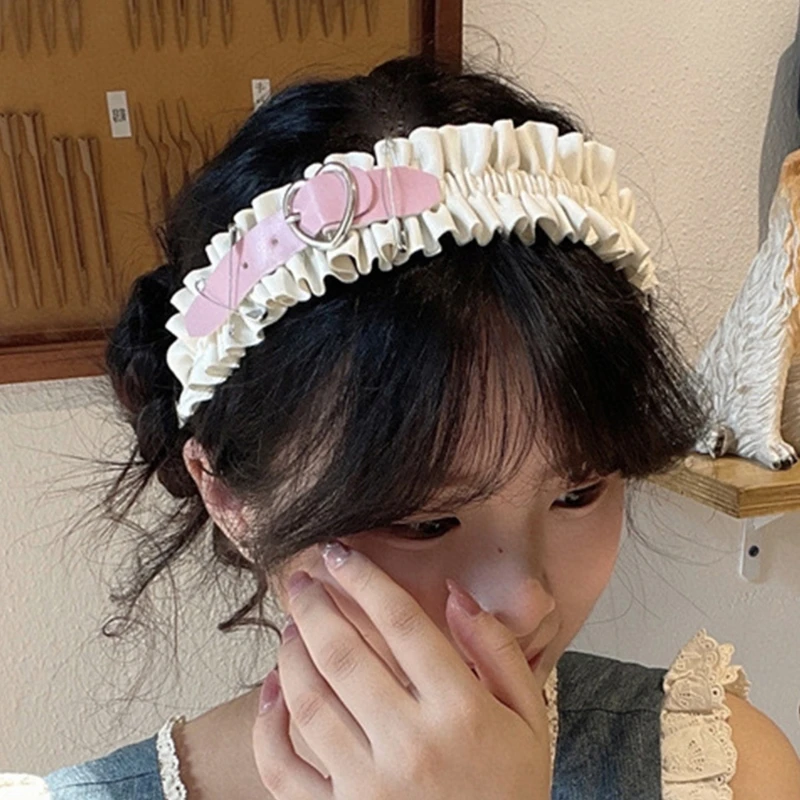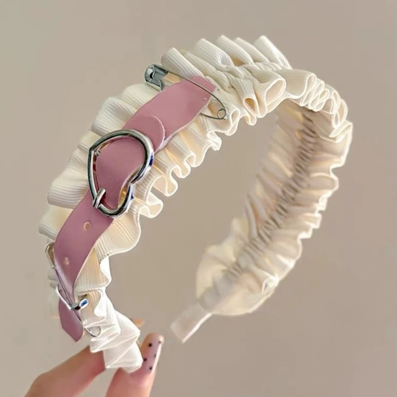 Кружевной обруч для волос с рюшами и пряжкой в виде сердца ремень 2000-х годов - купить