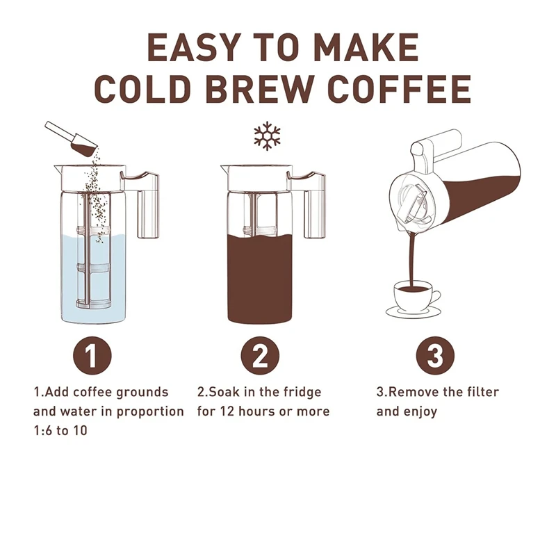 Отзывы о Кофеварка для холодного заваривания кувшин кофе со льдом на 40 унций с сетчатым