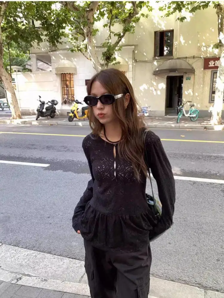 Отзывы о Genayooa Корейская модная футболка женская кружевная рубашка с вырезами Y2k винтажные