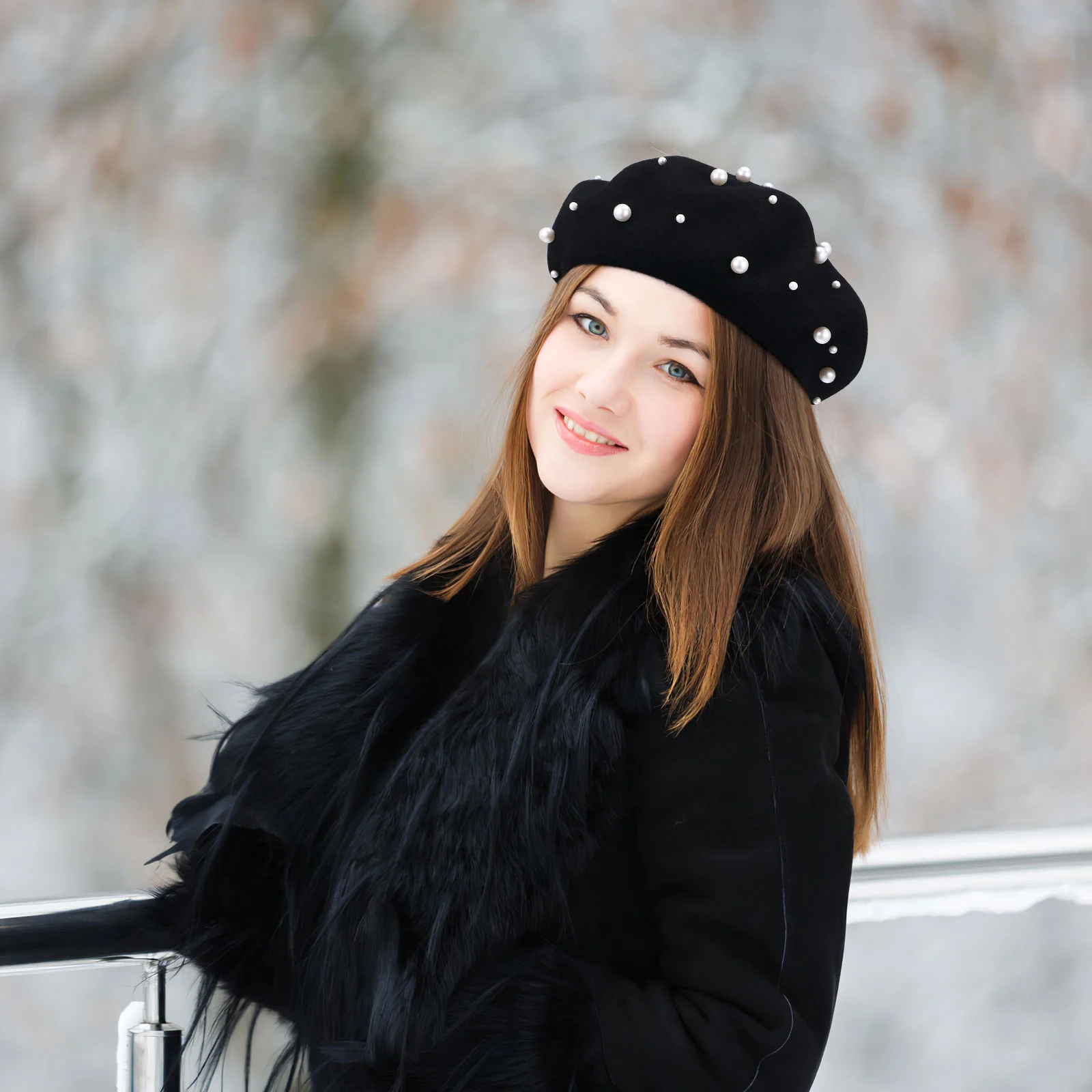 Отзывы о Шерстяной берет с заклепками кашемировый жемчужный жемчуг компактные шапки