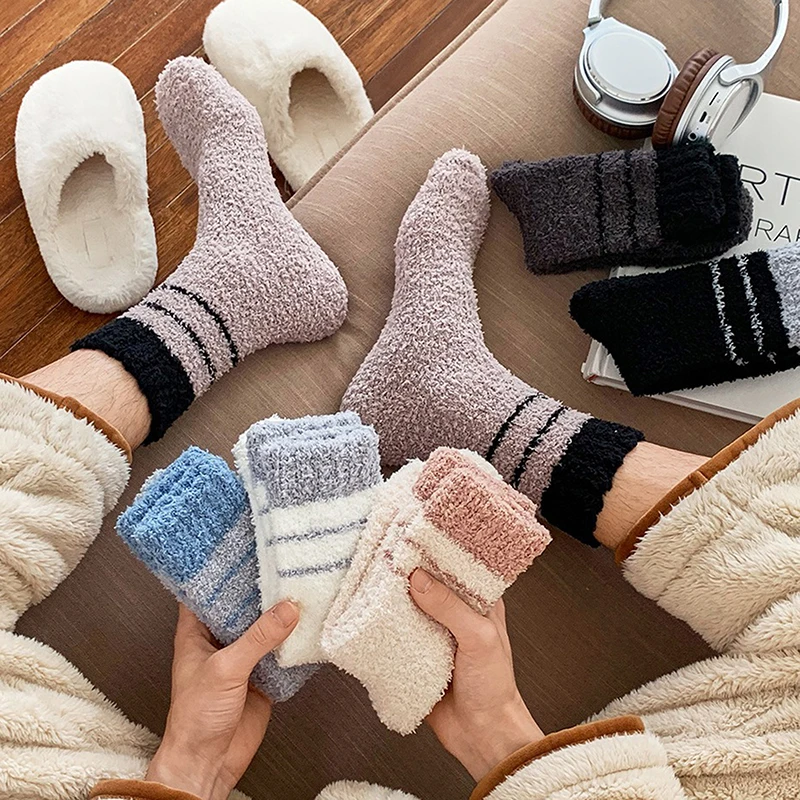 1 пара толстых термостойких однотонных мягких пушистых полосатых носков женские - купить