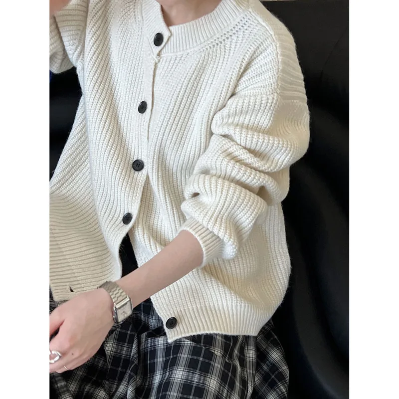 Осень-зима свитер из грубой пряжи кардиган женский однобортный повседневный - купить