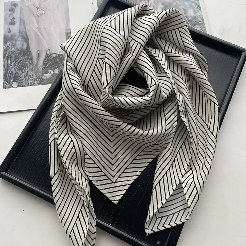 TT @ Двойной креповый шелковый шарф для женщин простые линии повседневный - купить
