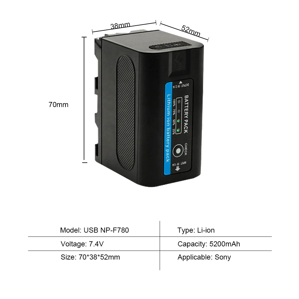 Отзывы о Аккумулятор NP-F780 емкостью 5200 мАч со светодиодным индикатором для Sony F970 F550 F570 F730 F750