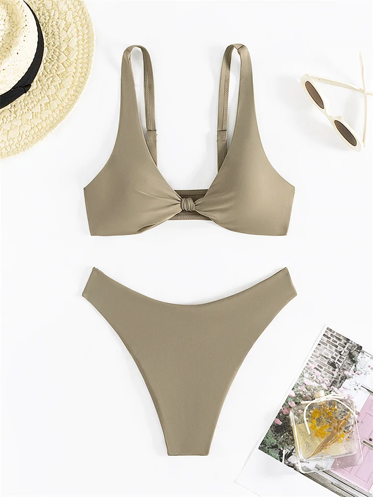 Отзывы о Купальник бикини женский купальник 2024 новый однотонный комплект на бретельках
