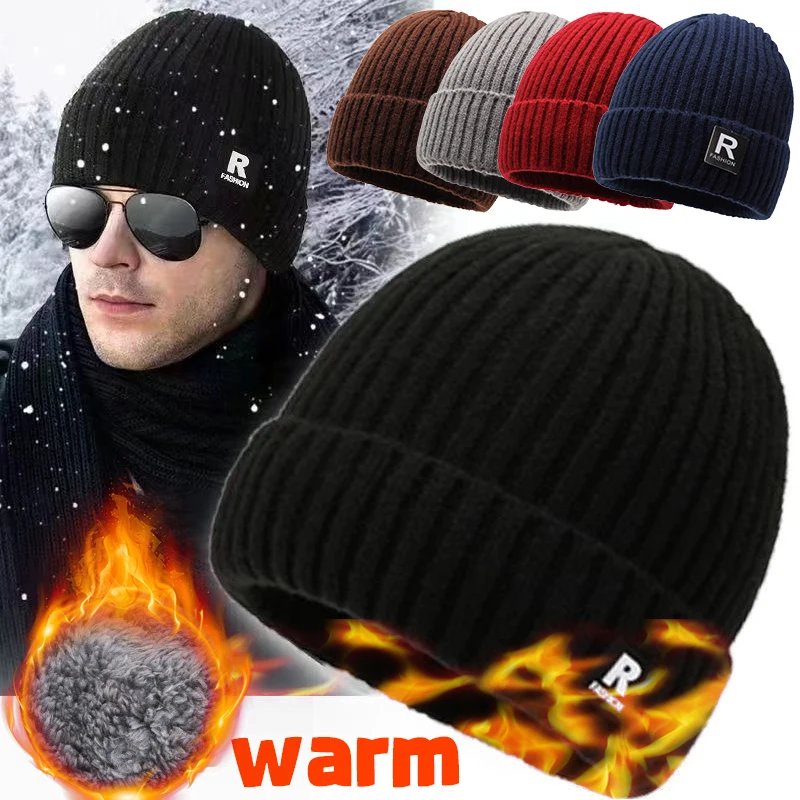 Новая зимняя шапка-бини для мужчин вязаная шапка женская толстая шерстяная с - купить