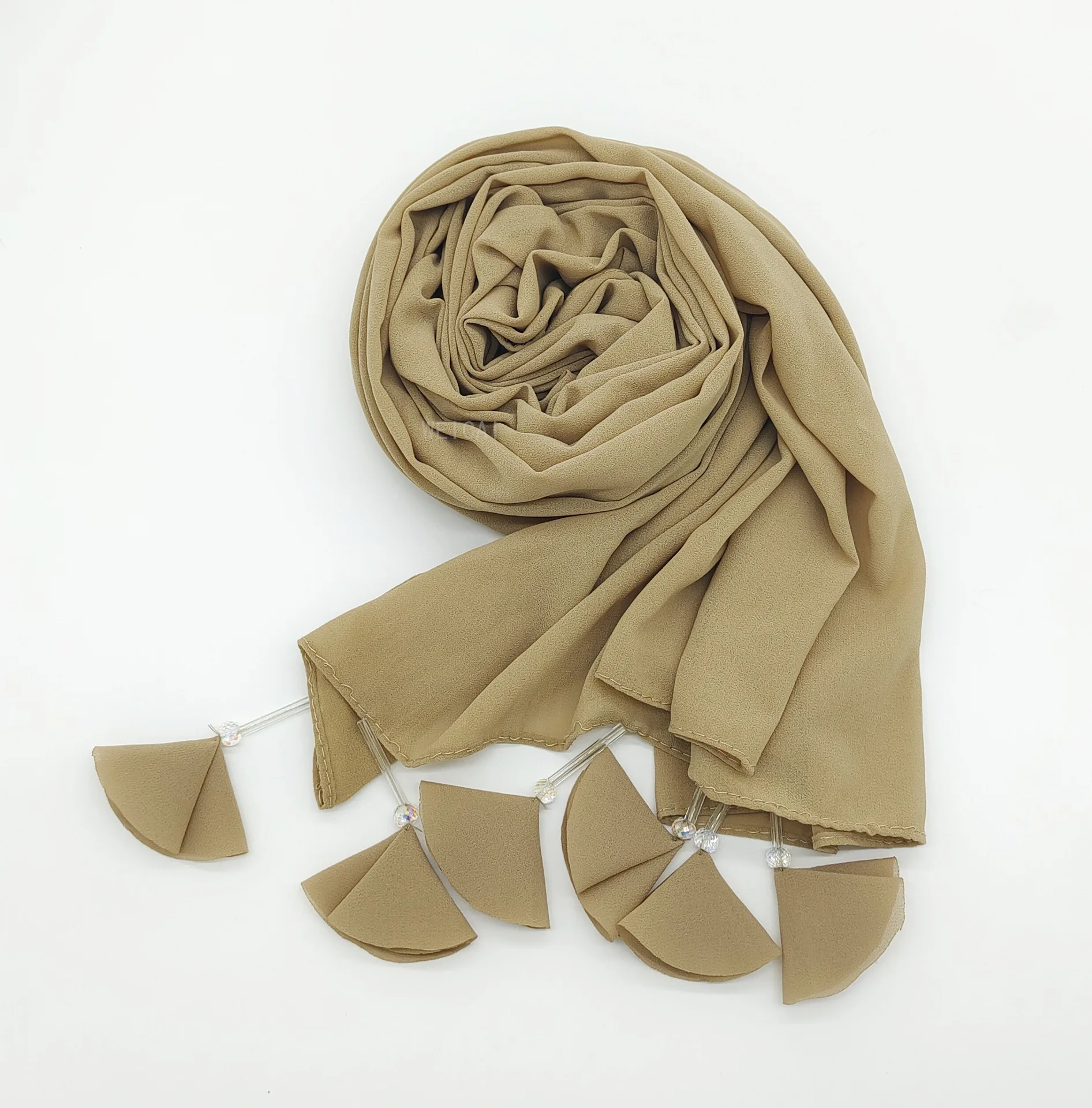 Простой жемчужный шифоновый шарф с бахромой и кристаллами хиджаб мусульманская - купить