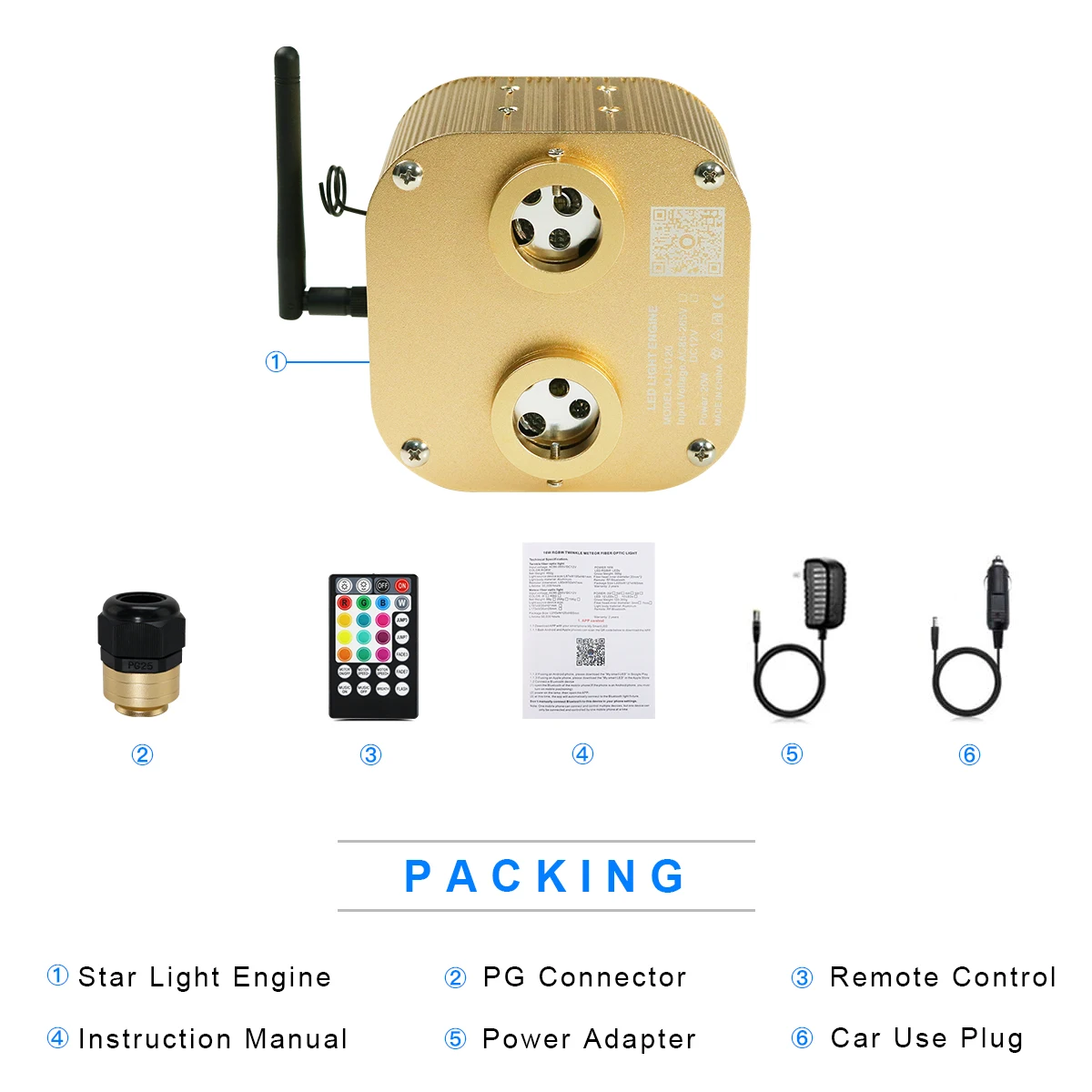 Отзывы о Двухголовочный 20 Вт RGBW Мерцающая Волоконно-оптическая Звезда Верхний Свет