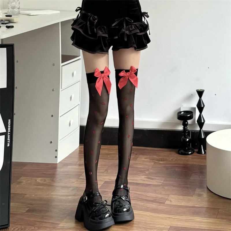 Милые прозрачные чулки для нижнего белья чистый милый бант выше колена черный - купить