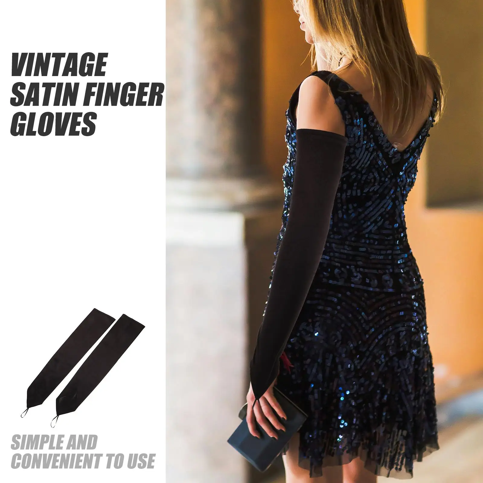 Отзывы о Черные атласные перчатки без пальцев в технической длине элегантные женские