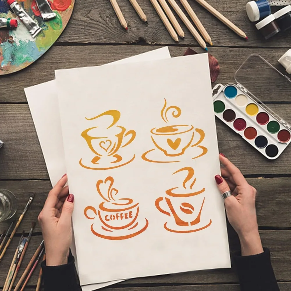 4 стиля трафарет для кофейной чашки шаблон рисования 11 8 × дюйма многоразовые - купить