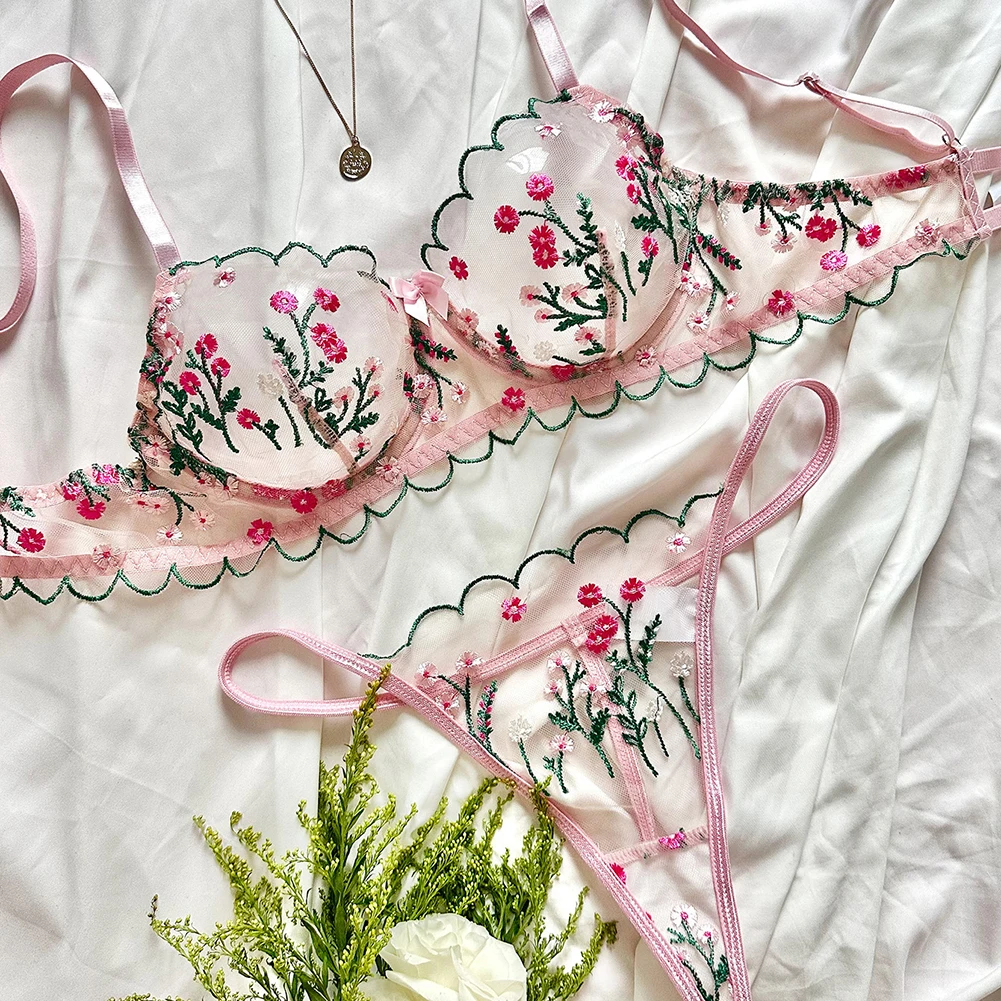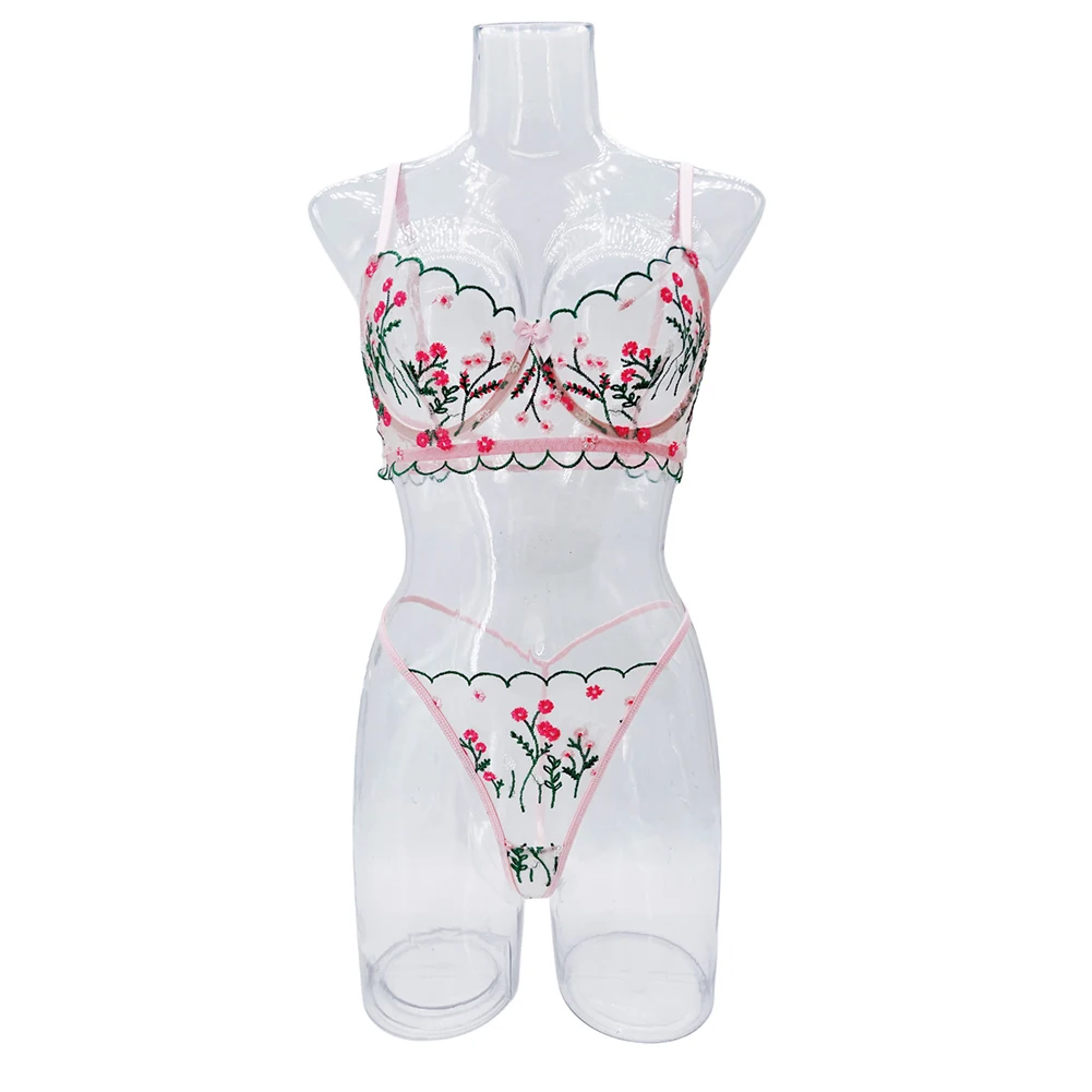 Отзывы о Сладкая прозрачная сетка с цветочной вышивкой удобный сексуальный комплект