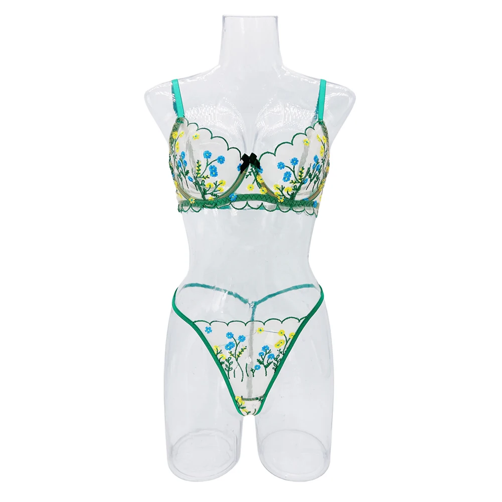 Сладкая прозрачная сетка с цветочной вышивкой удобный сексуальный комплект - купить