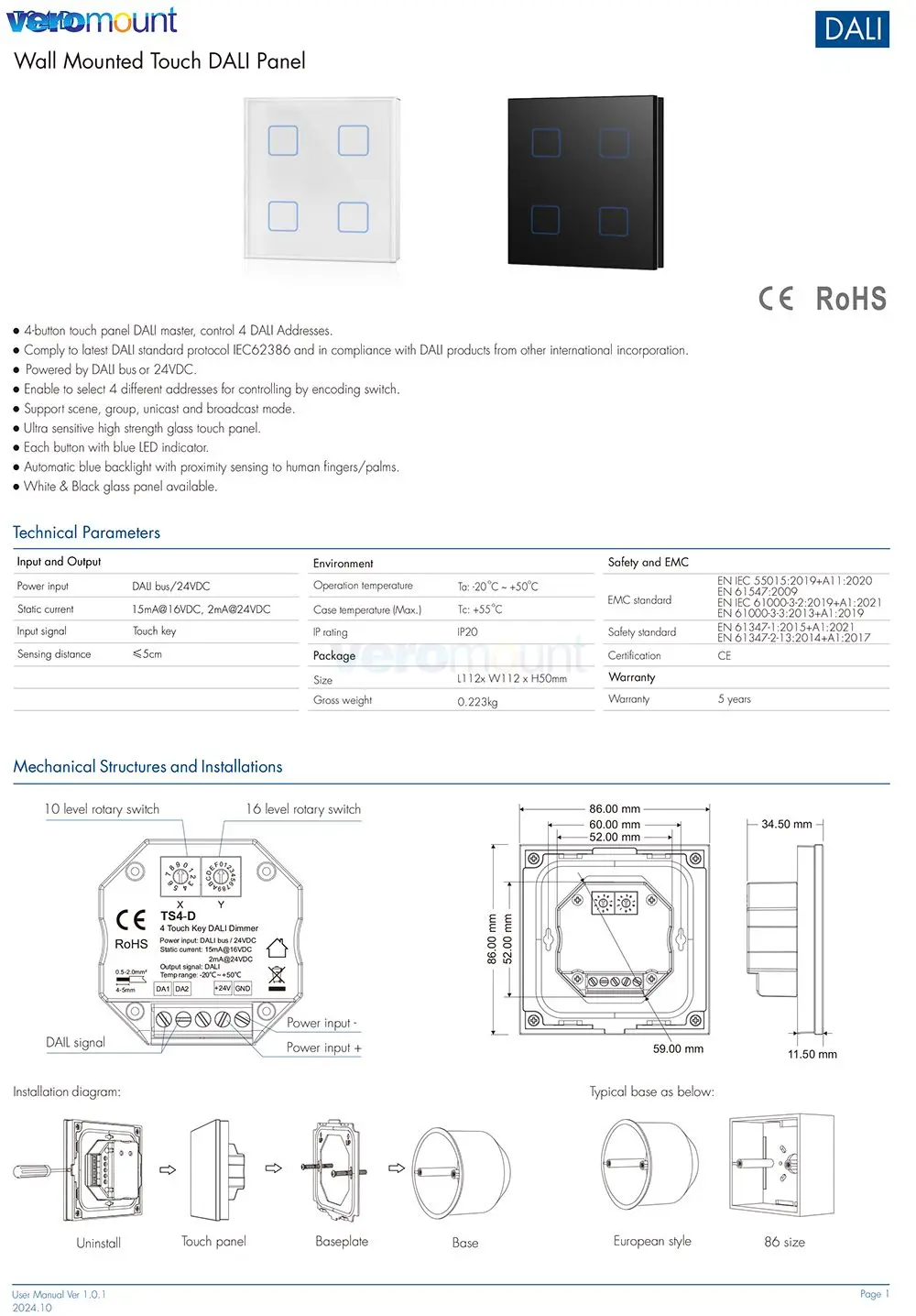 Skydance TS4-D 24 В постоянного тока 4 DALI адреса кнопки настенная сенсорная панель DALl Master - купить