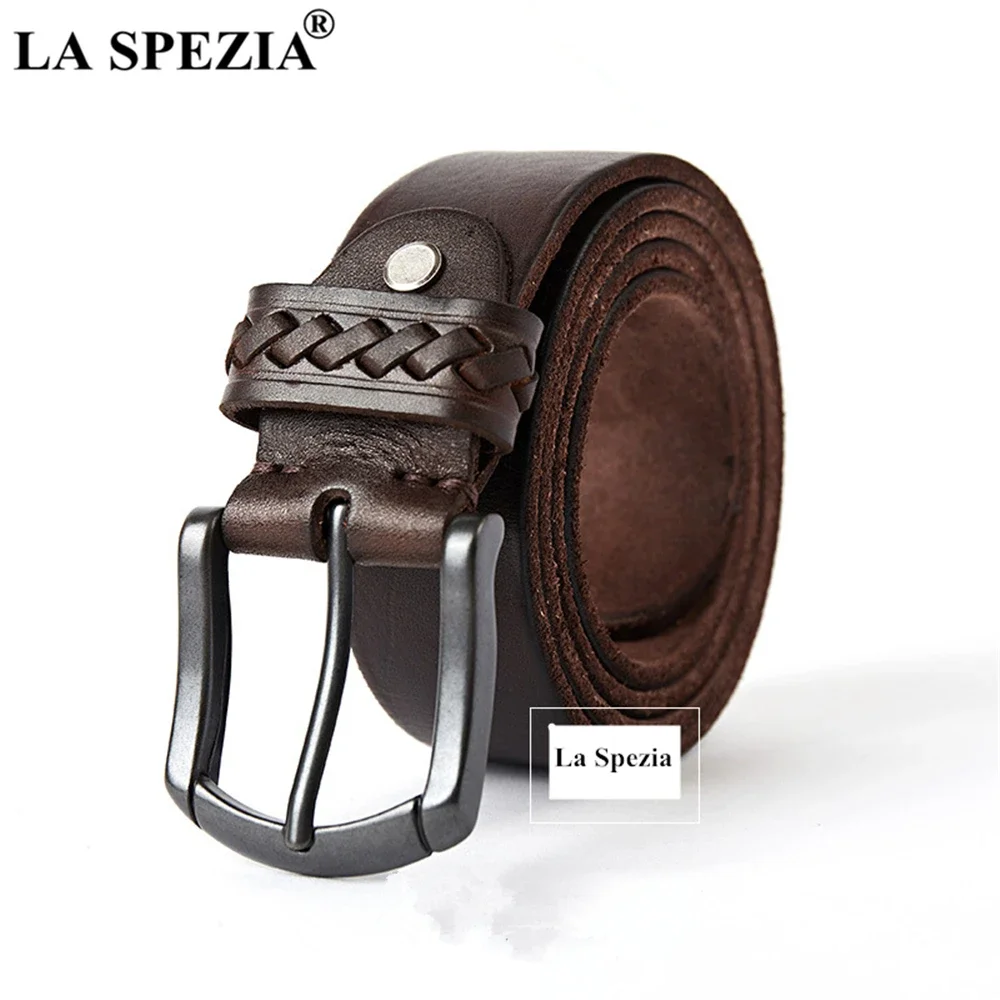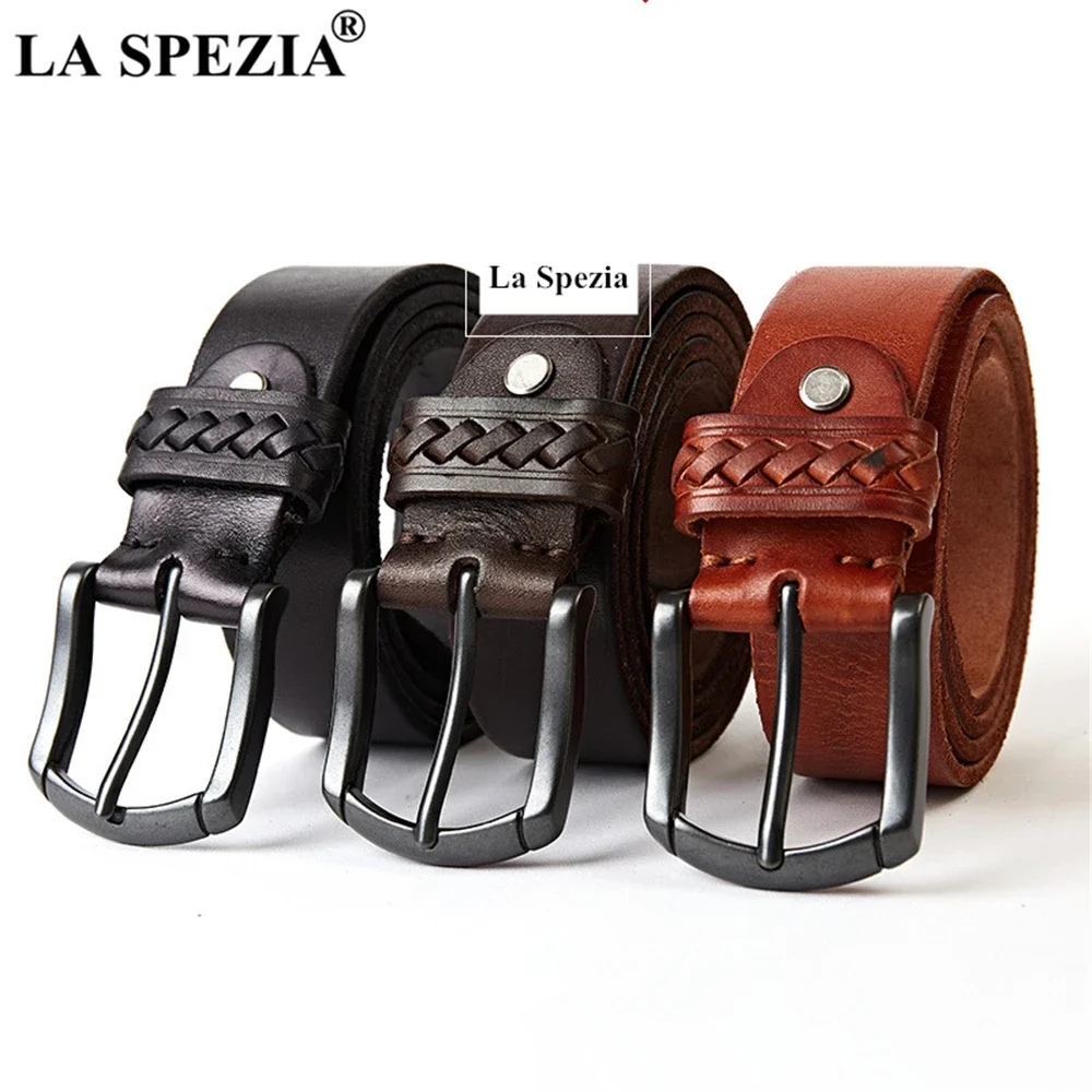 LA SPEZIA мужской кожаный ремень черный из натуральной кожи с пряжкой винтажный - купить