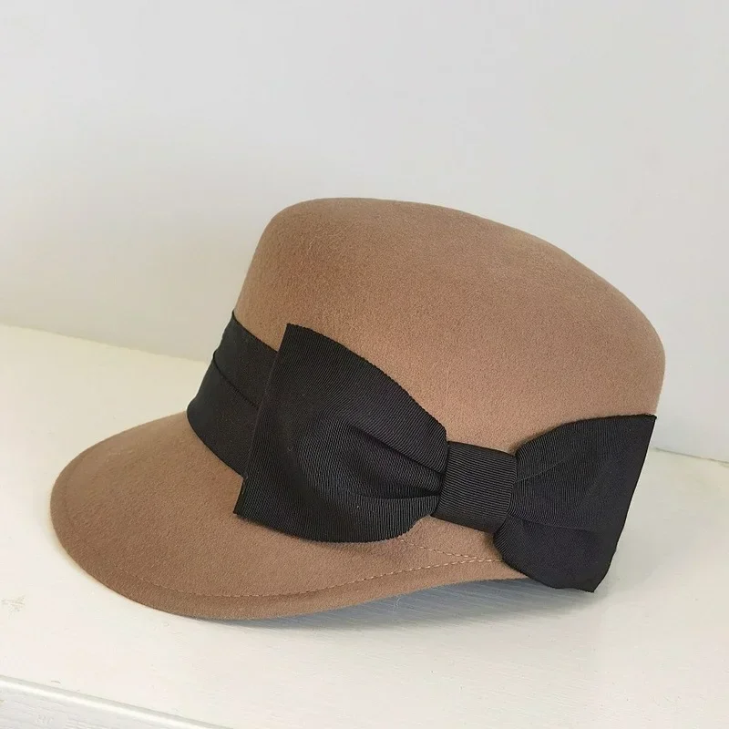 Женская шерстяная зимняя кепка с большим бантом модная женская теплая шапка - купить