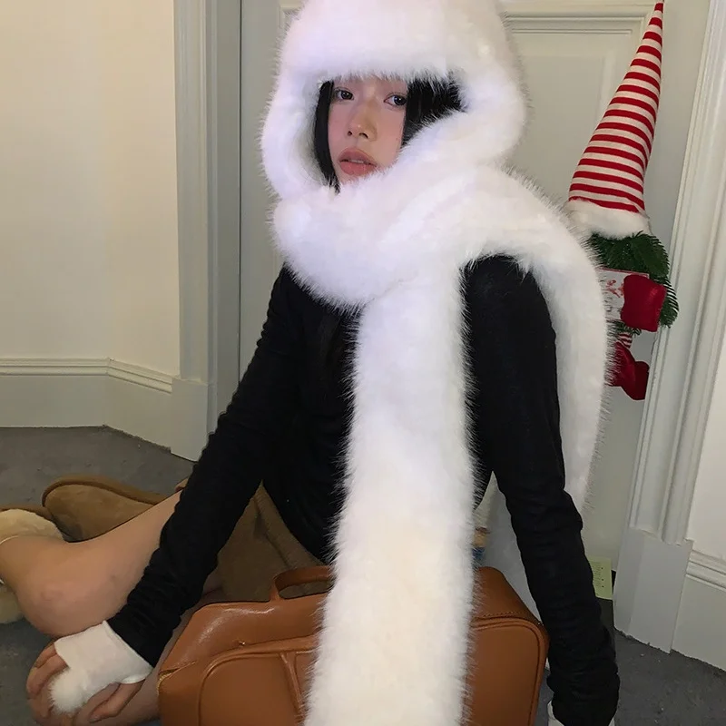Плюшевая шапка из искусственного меха шарф костюм зимний норкового комплект - купить