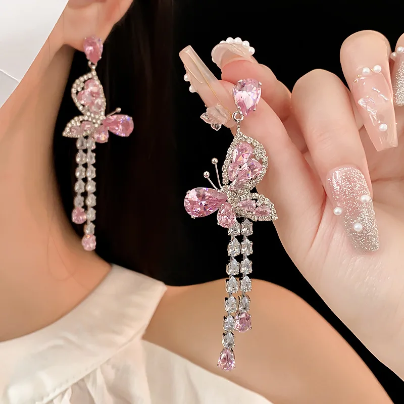 NISHIZAWA циркониевые розовые серьги с кисточками и бабочками модные индивидуальные - купить