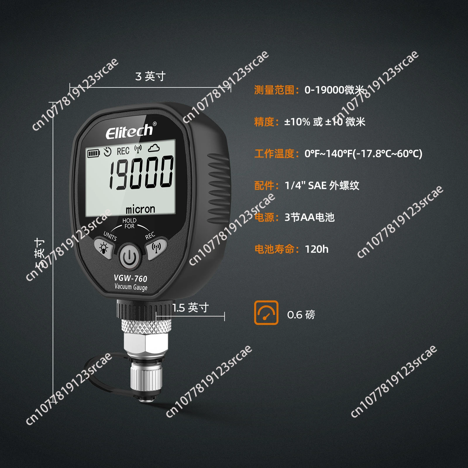 Отзывы о Беспроводной цифровой вакуумметр 0-19000 микрон хладагента 1/4 дюйма SAE VGW-760