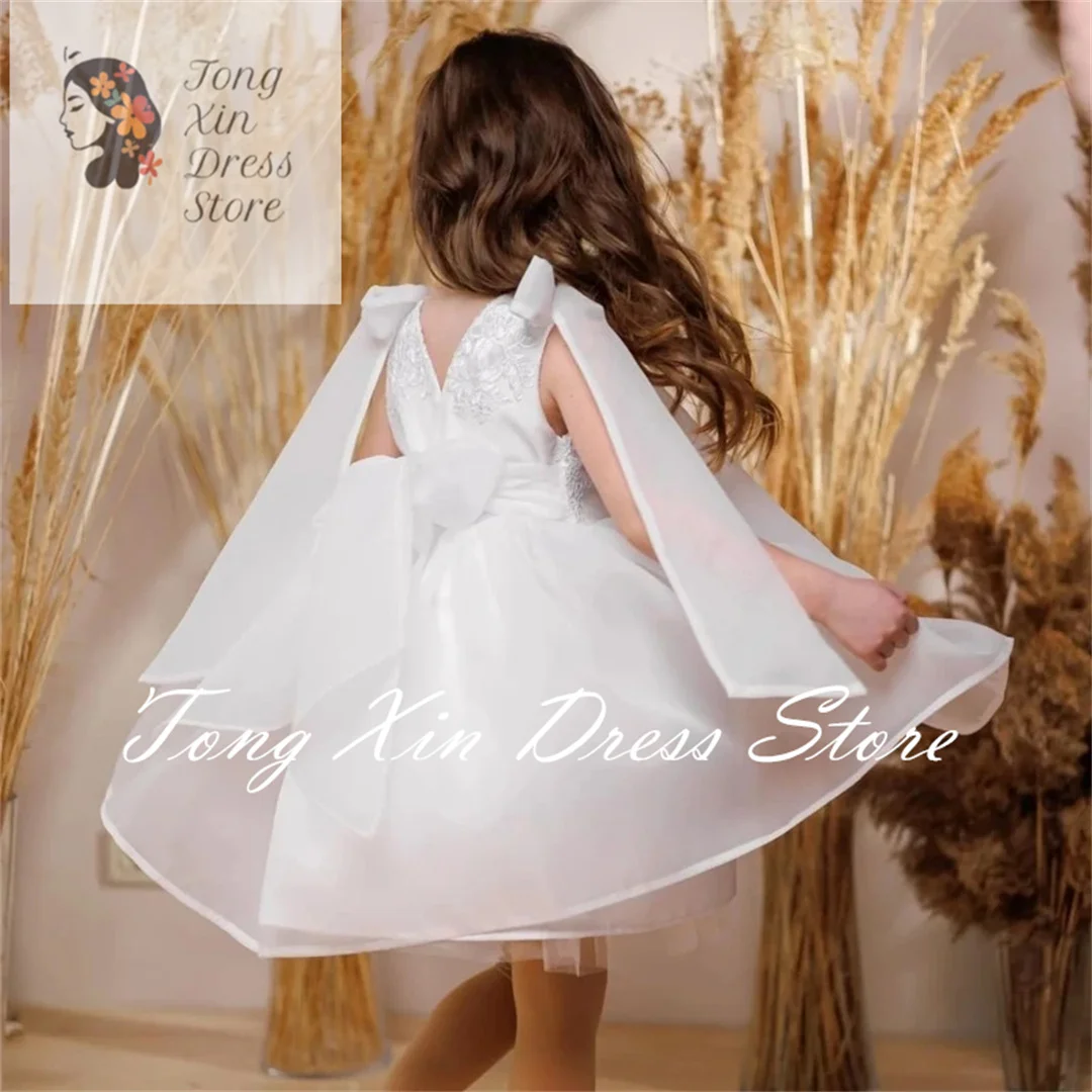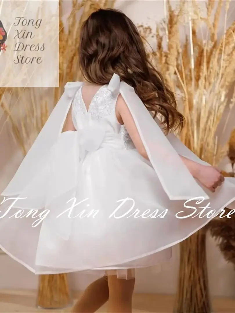 Отзывы о Платья для девочек-цветочниц Белый тюль с цветочной аппликацией и бантом без