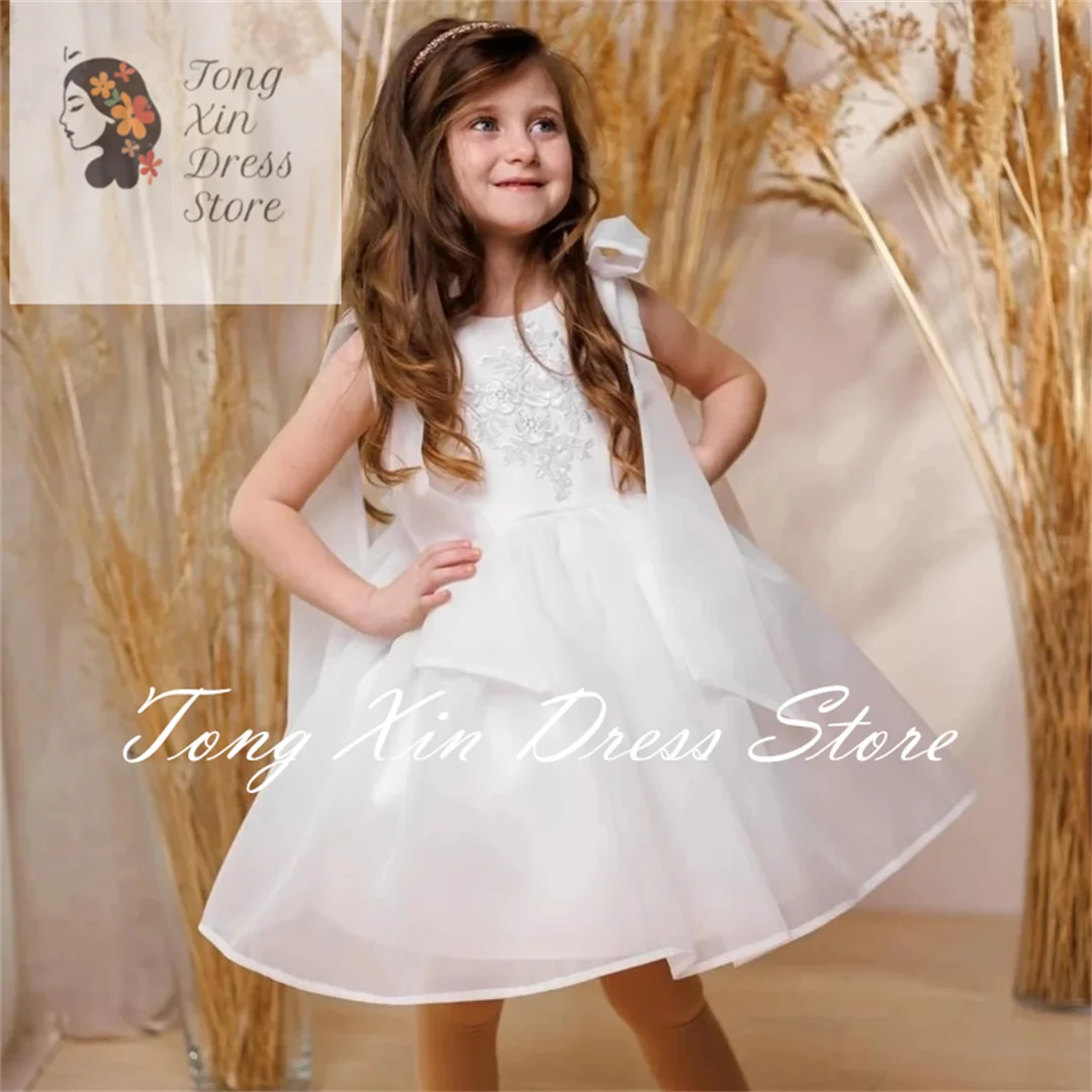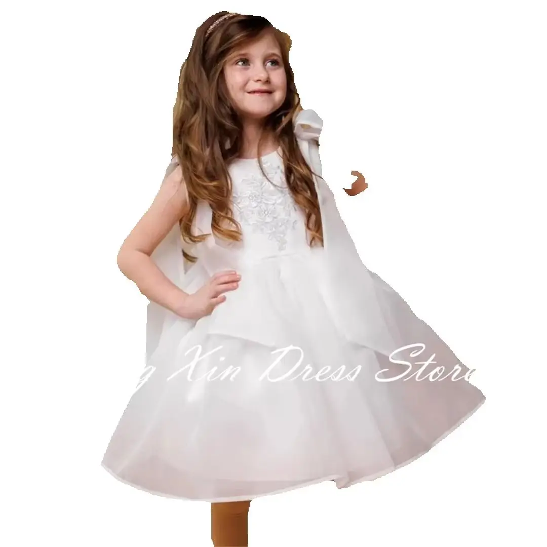 Платья для девочек-цветочниц Белый тюль с цветочной аппликацией и бантом без - купить