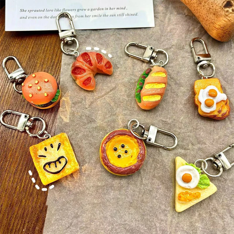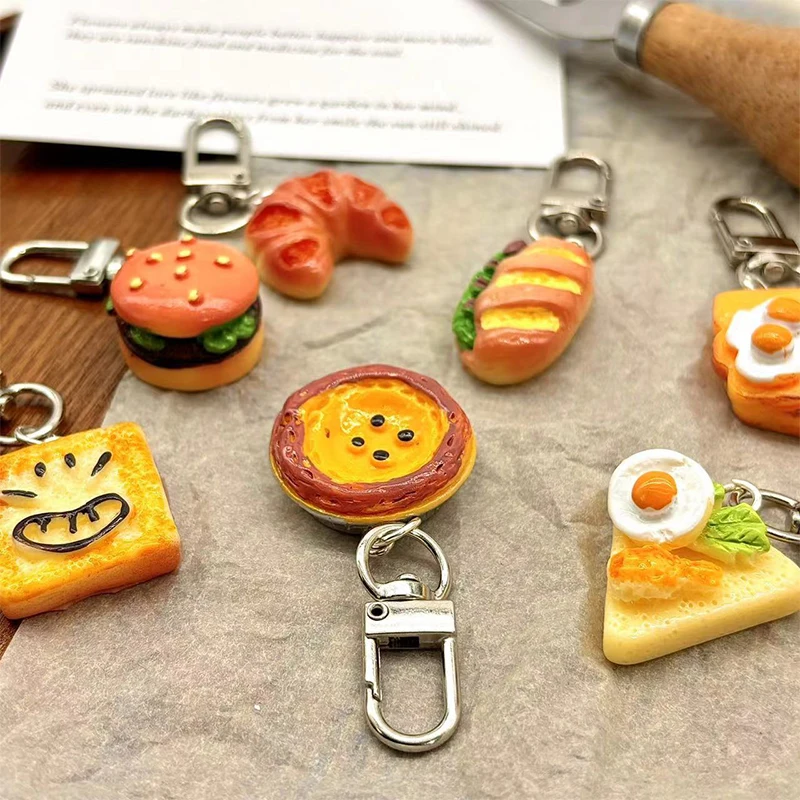 1PC Simulation Hamburger Bread Tart Omelette Modeling Cute Food Toy Keychain Pendant Small Bag Charms - купить