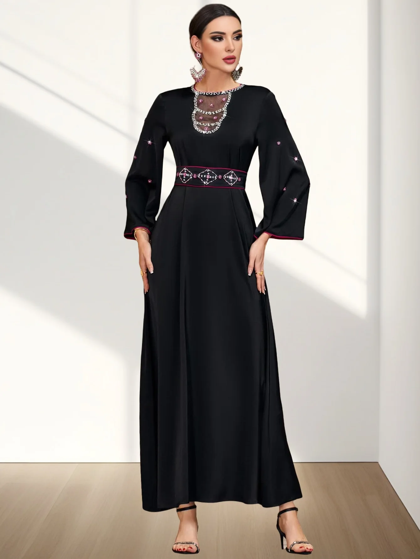 Отзывы о Модное женское атласное платье макси с бриллиантами мусульманская Абая Дубай