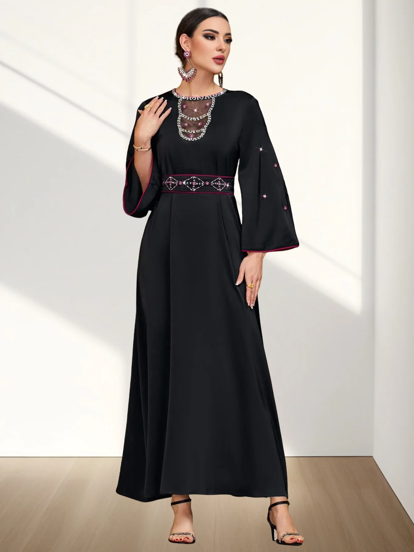 Модное женское атласное платье макси с бриллиантами мусульманская Абая Дубай - купить