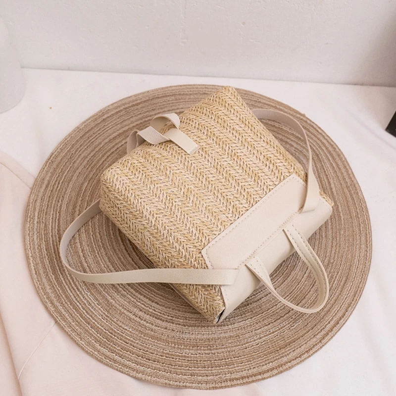 Женский соломенный рюкзак из искусственной кожи пляжный Bobo элегантный маленький - купить