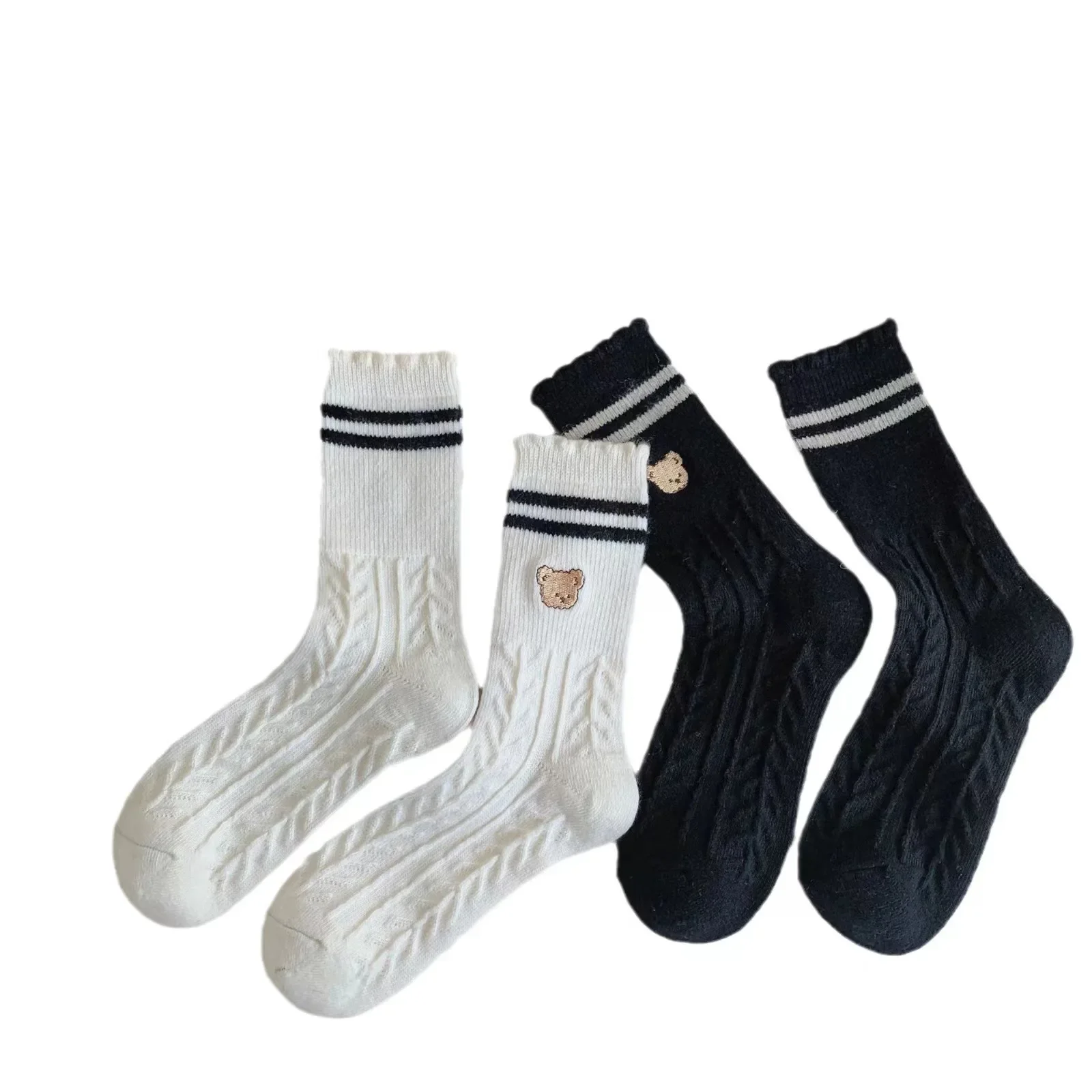 Отзывы о Шерстяные носки Kawaii с краями медведя женские зимние утолщенные теплые короткие