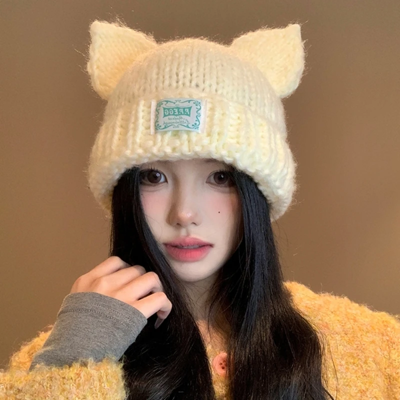 95AB женская зимняя вязаная шапка крючком с кошачьими ушками снежная для девочек - купить