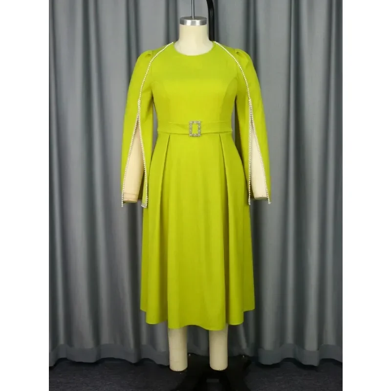 Отзывы о Женское однотонное осеннее элегантное вечернее платье с круглым вырезом и