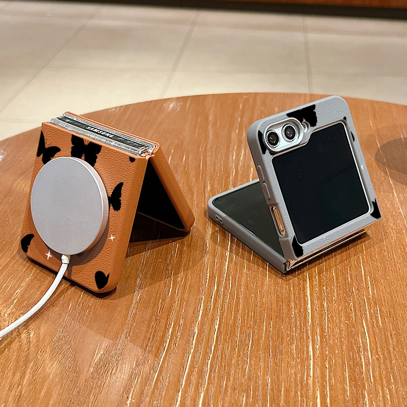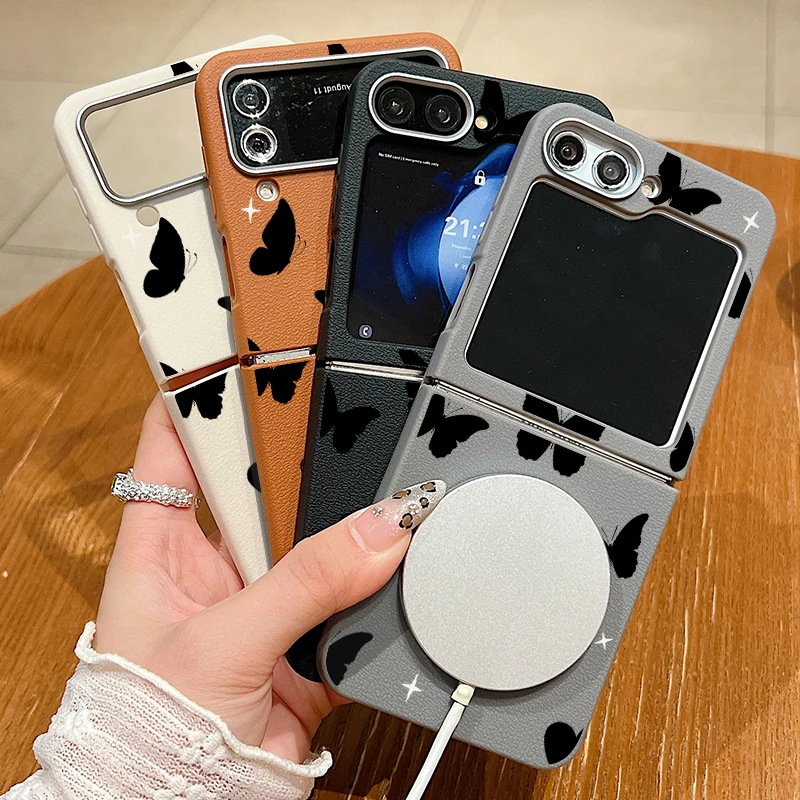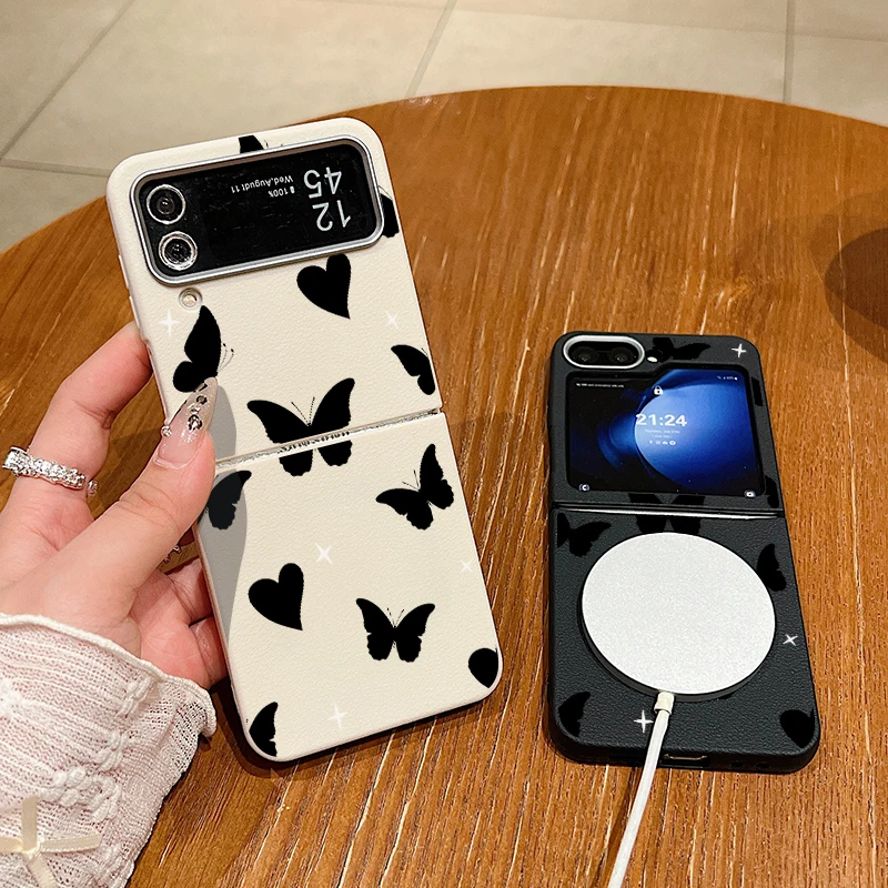 Black Love Butterfly Print Case For Samsung Galaxy Z Flip6 Flip5 Flip4 Flip3 Magnetic Magsafe Leather Texture Folding Cover - купить