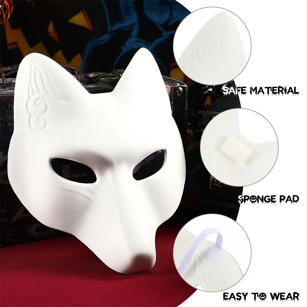 2 шт. мультяшная маска лисы для женщин на Хэллоуин белая крафт-бумага маш Ева - купить