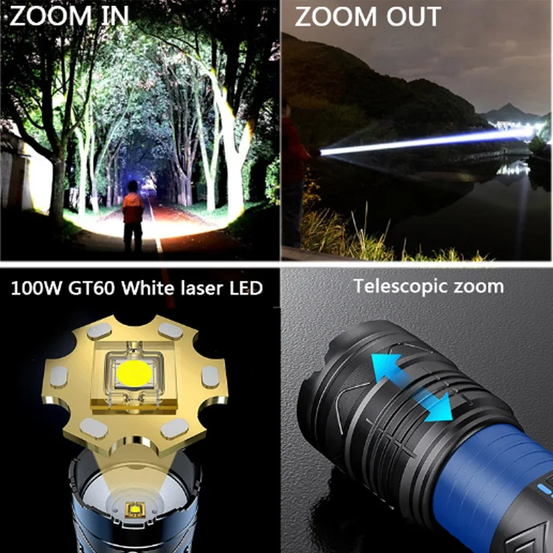 Мощный фонарик супер яркий прожектор мощный дисплей дальний масштабируемый - купить