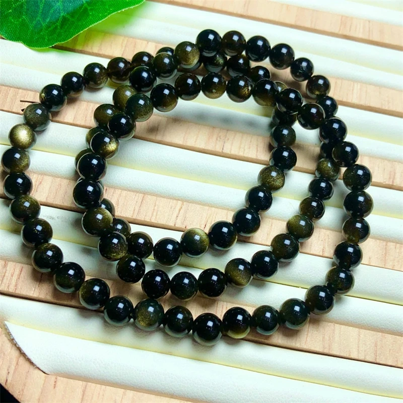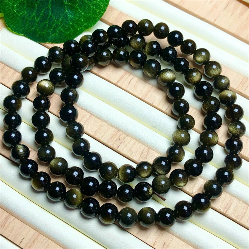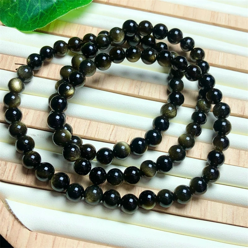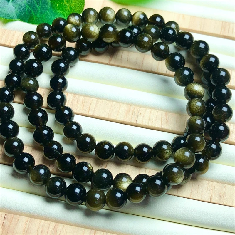Отзывы о 6MM Natural Golden Obsidian Triple Circle Bracelet Reiki Healing Fengshui Stone Fashion Jewelry For Women Holiday Gift 1PCS