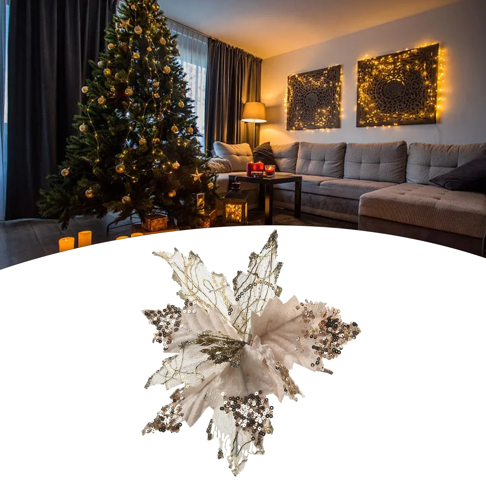 Отзывы о 1 шт. рождественские блестящие искусственные цветы пуансеттии