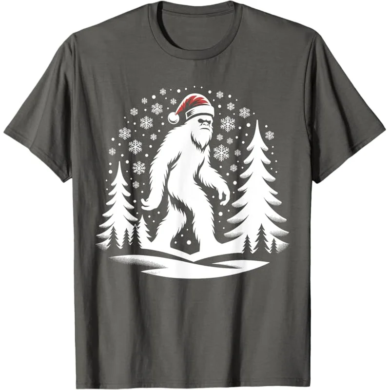 Отзывы о Bigfoot Snow Santa Hat Рождественская футболка Sasquatch для пеших прогулок женская и мужская