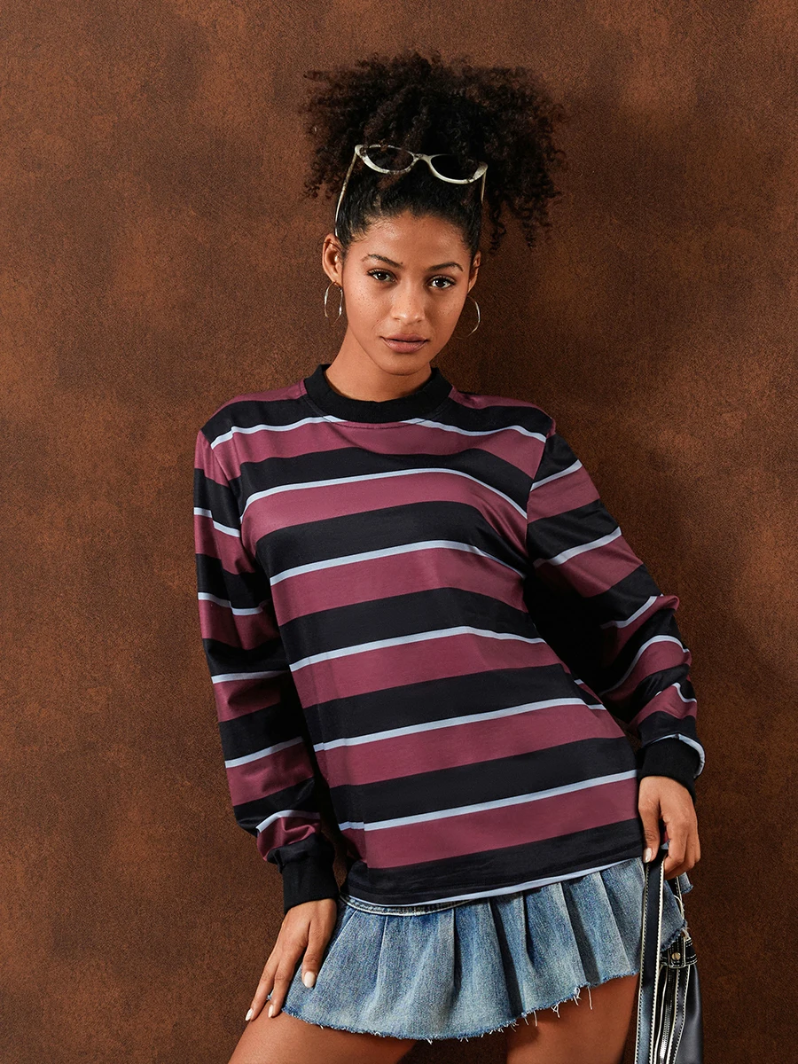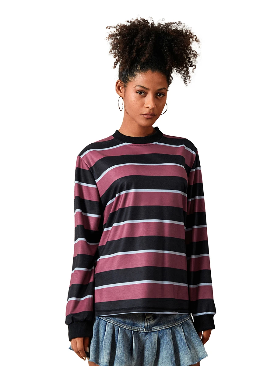 Отзывы о Женская полосатая футболка контрастного цвета с длинным рукавом и круглым