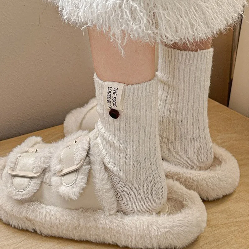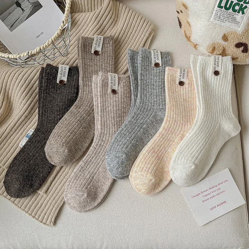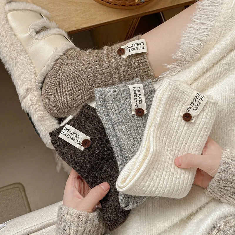 Отзывы о Шерстяные носки с пуговицами и буквами женские однотонные корейские милые до