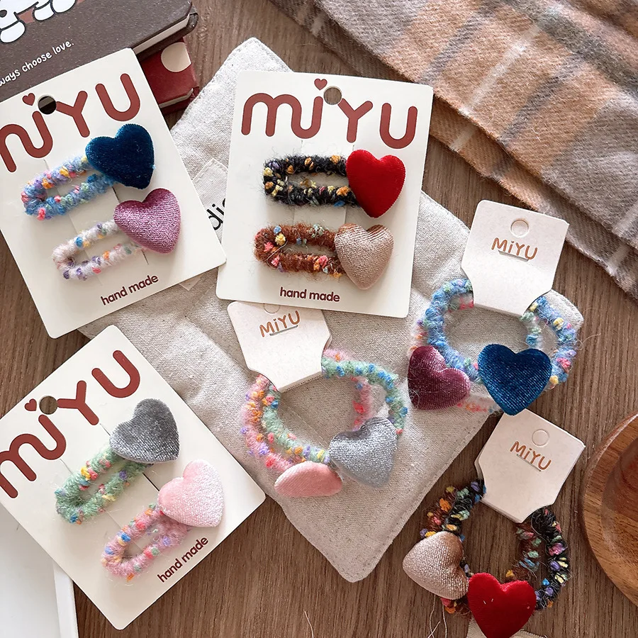 2 шт. новые бархатные заколки для волос в форме сердца детские эластичные ленты - купить