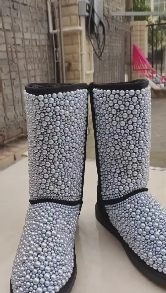 Отзывы о Женская хлопковая обувь ручной работы с черным высоким жемчугом и бриллиантами