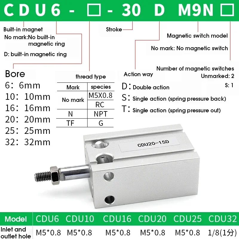 Тип SMC CDU6 CDU10 CDU16 CDU20 CDU25 CDU32 Ход поршня 5-50 мм Встроенный магнит двойного действия CDU - купить