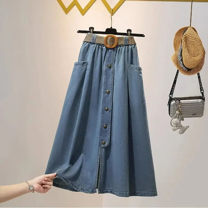 Отзывы о Женские джинсовые юбки лето 2024 повседневная юбка трапециевидной формы с