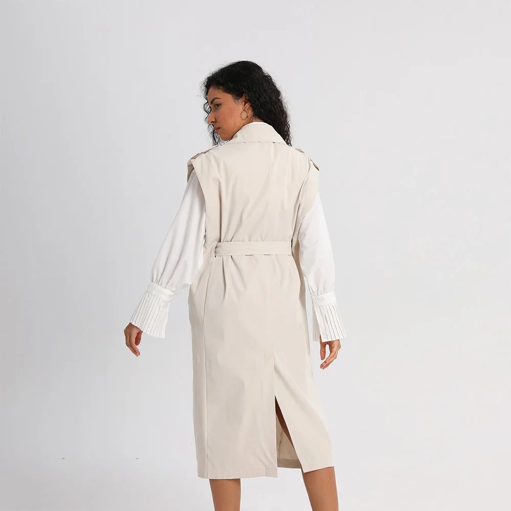 JHJN французский женский плащ без рукавов с карманом повседневная свободная - купить