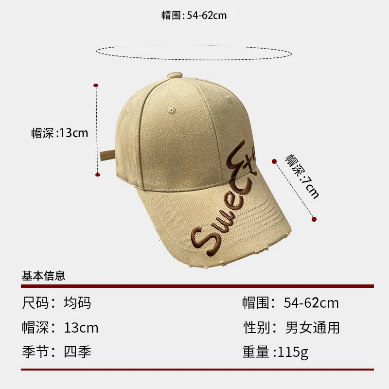 South korea Dongdaemun Letter Embroidery Ripped Baseball Cap Women Sanding Big Head Circumference Make Your Face Look Smaller... - купить