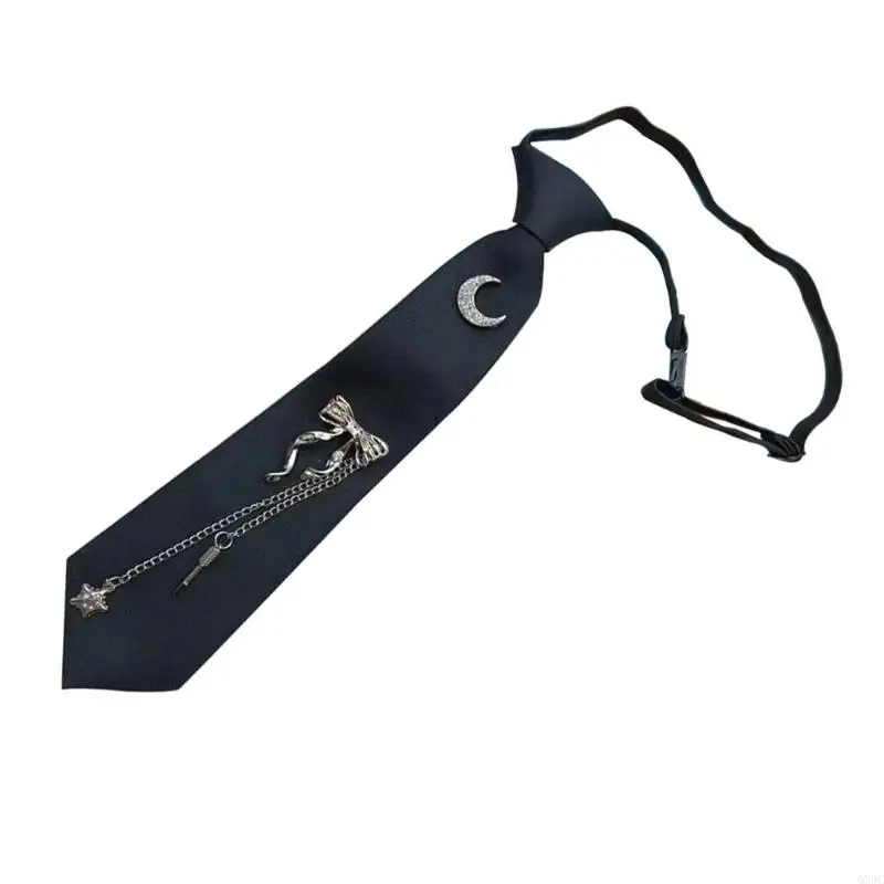 Q39C Tassels Moon Star Pendant Black Pre -Tyed Tyced Sktie с металлическим базовым шармом Unisex Fairycor - купить