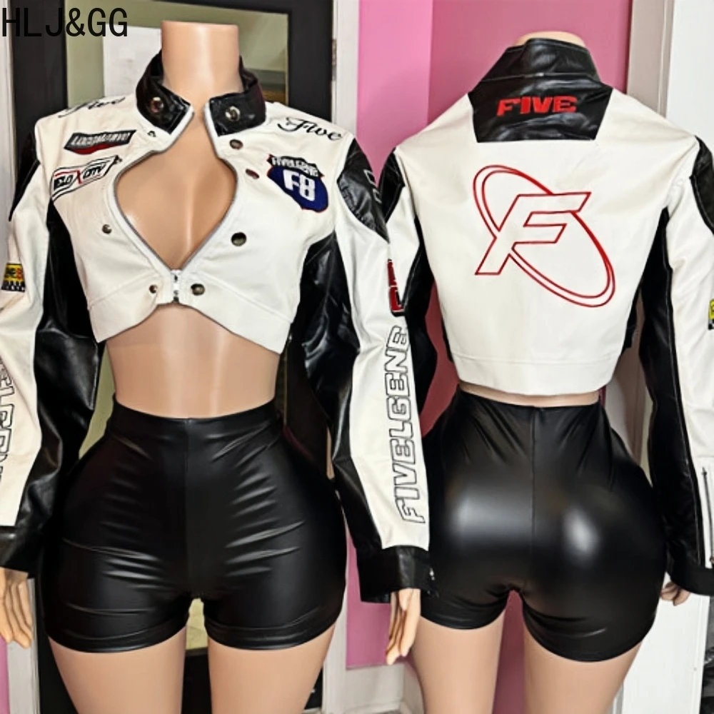 Отзывы о HLJ &GG модная кожаная куртка с буквенным принтом комплекты из двух предметов