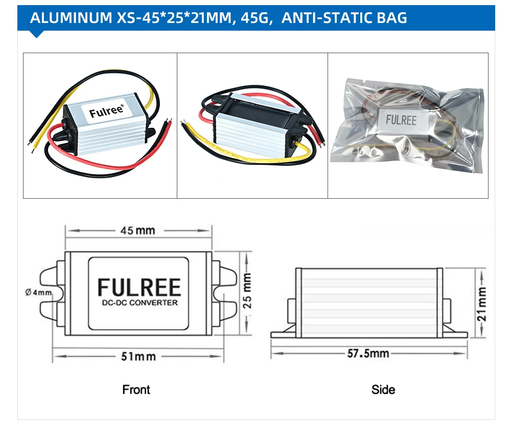 Fulree Преобразователь постоянного тока 24-72В в 5/12В 1-3А - купить