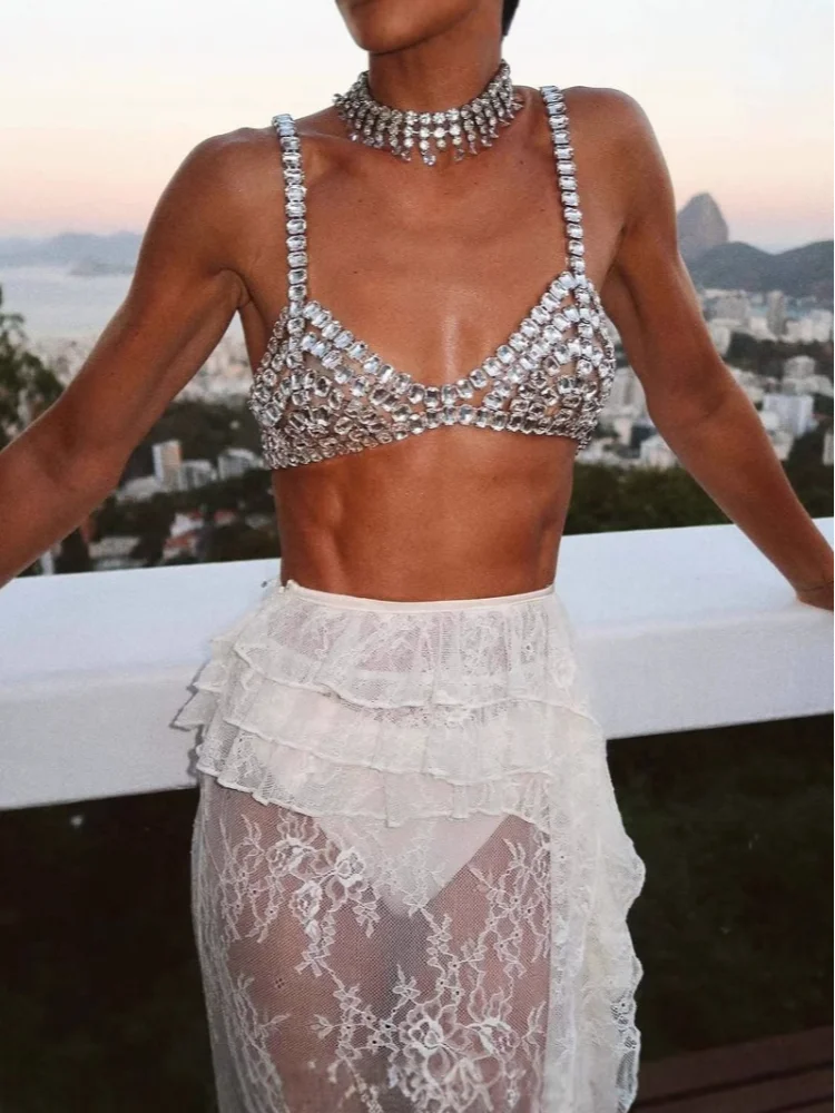 Женский сексуальный белый кружевной костюм с юбкой элегантный топ глубоким - купить